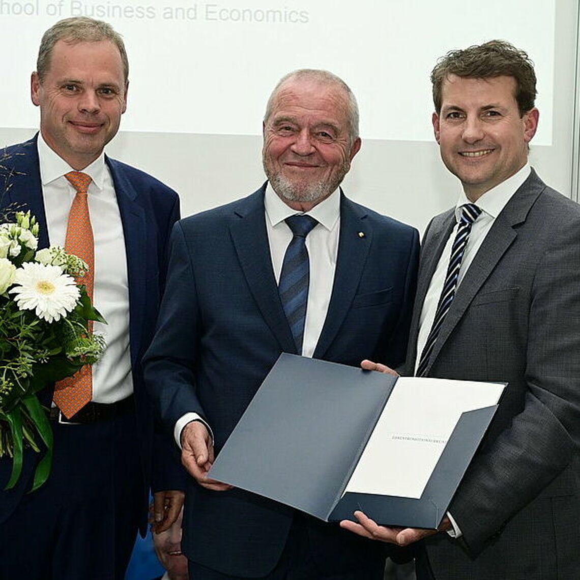 Das hebt die Bedeutung dieser Entscheidung noch hervor, die Prof. Dr. Peter Witt, Vorstandsvorsitzender der Schumpeter School Stiftung und Lehrstuhlinhaber für Technologie- und Innovationsmanagement, begründete: Heinz Schmersal, geschäftsführender Gesellschafter der Schmersal Gruppe seit 1982, trage immer wieder Impulse und Fragestellungen in die Fakultät hinein und teile sein praktisches Wissen auf vielfältige Weise mit dem Lehrpersonal und den Studierenden.