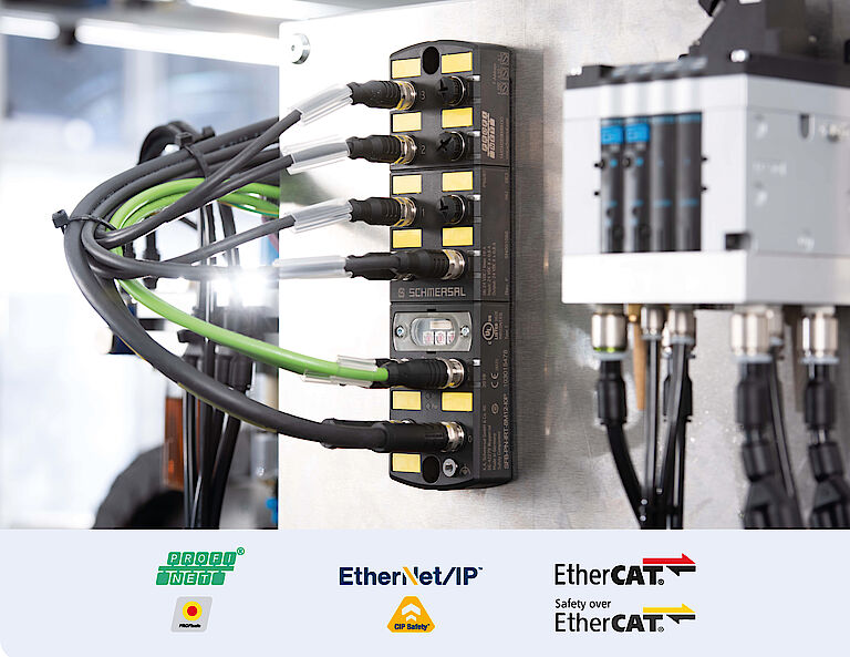 Der Vorteil: Der Konstrukteur kann die Sicherheitsfunktionen einer Maschine unabhängig vom eingesetzten Feldbussystem projektieren, da mit den drei Varianten die international am weitesten verbreiteten Steuerungssysteme abgedeckt sind.
