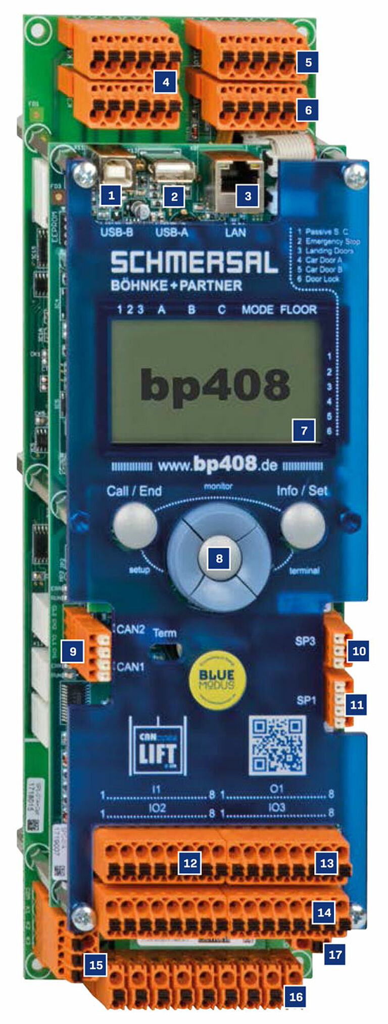 Das zentrale Element einer Aufzugsanlage ist die Steuerung, die das komplexe System überwacht und regelt – für eine sichere Beförderung von Personen und Lasten. Das Steuerungsmodul bp408 überzeugt durch seine kompakte Bauweise und vielseitigen Funktionen, die den Einsatz sowohl in Seil- als auch in Hydraulikanlagen an allen gängigen Einbauorten ermöglichen: