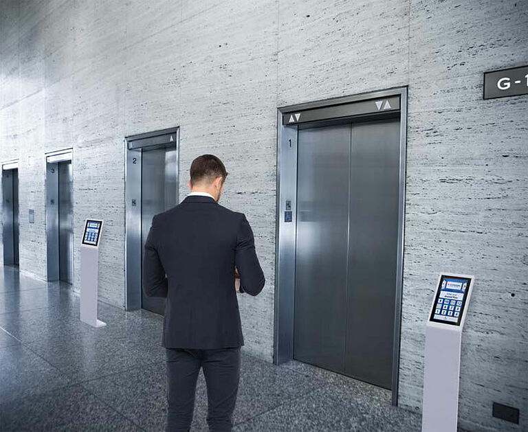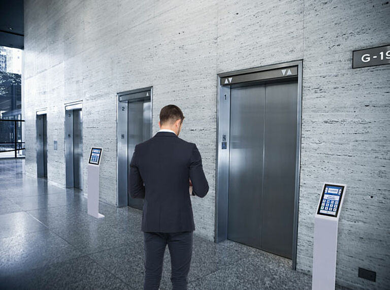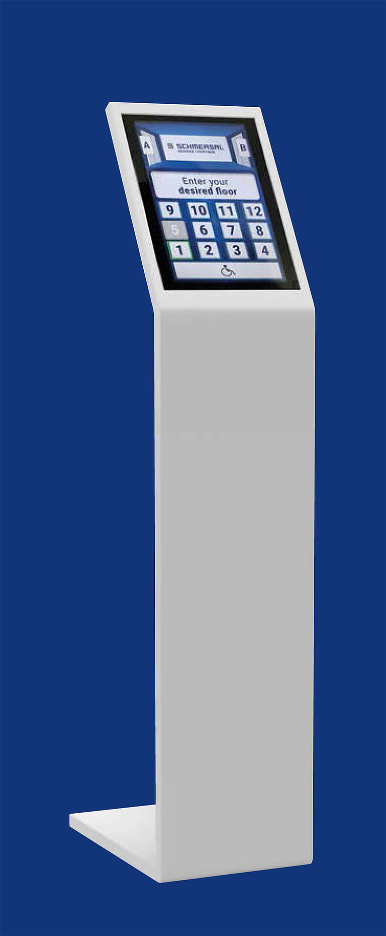 Unser Touchscreen ist so konzipiert, dass er an der Wand oder in einer Säule montiert werden kann. Die zwei verschiedenen Größen ermöglichen es, einen größeren Bildschirm für die Aufzugkabine und einen kleineren Bildschirm für den Aufzugeingang auf jeder Etage zu verwenden.