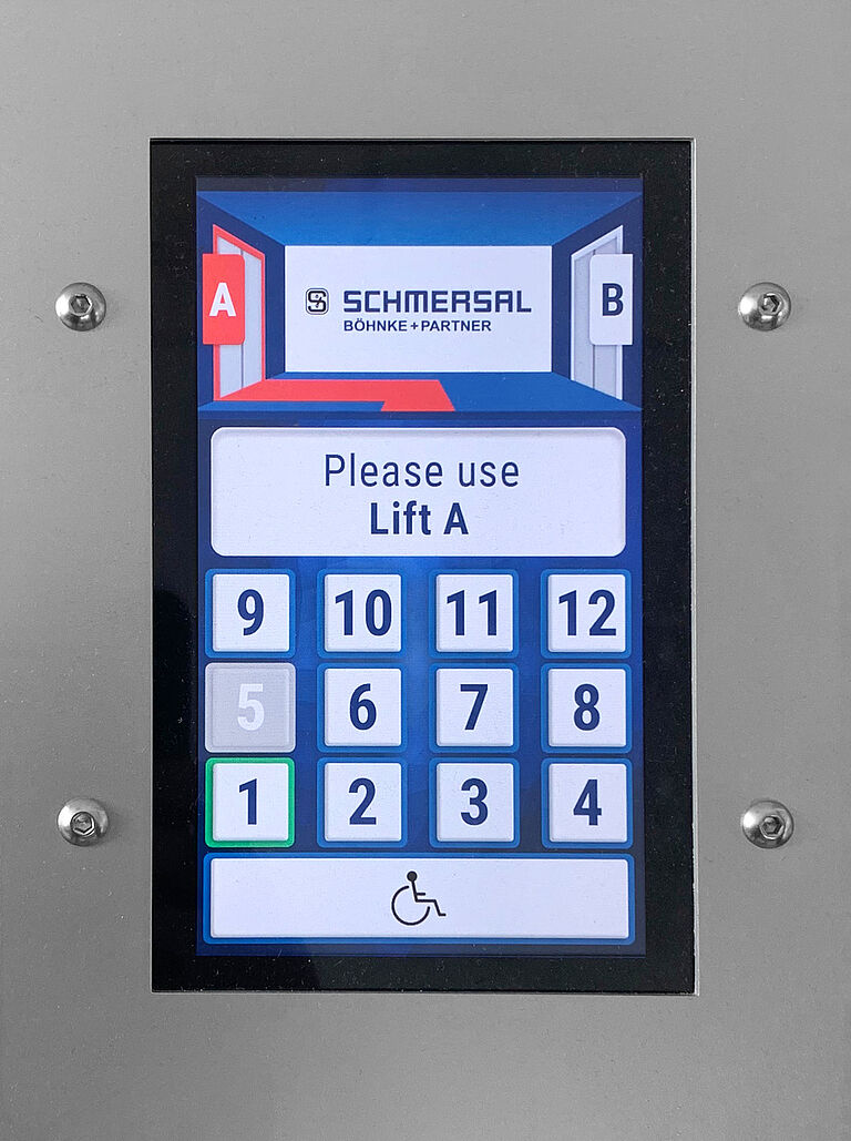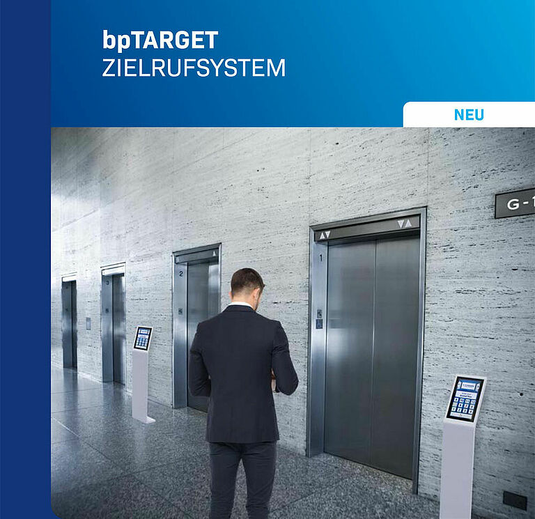bpTARGET ist ein intelligentes und effizientes Zielrufsystem für Aufzüge, bei dem der Fahrgast das Zielstockwerk in der Lobby des Gebäudes auswählt, anstatt die „Auf- und Ab“-Taste zu drücken und das gewünschte Stockwerk in der Kabine auszuwählen.