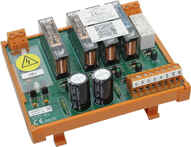 Das UCM-Modul enthält eine Schaltung zur Erkennung unbeabsichtigter Fahrkorbbewegungen bei geöffneten Türen gemäß EN 81-20 festgelegt. Es kann in Kombination mit einer zertifizierten Absinkverhinderung am Geschwindigkeitsbegrenzer und einer zertifizierten Fangvorrichtung zum Schutz vor unbeabsichtigter Fahrkorbbewegung eingesetzt werden.
