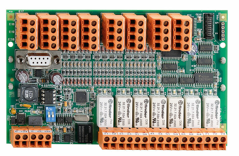 Um die Aufzugsteuerung optimal auf den jeweiligen Anwendungsfall anpassen zu können, stehen unterschiedliche Erweiterungskomponenten zur Verfügung. Diese werden mit einem CANBus mit dem CANopen Lift Standard mit dem Steuerungssystem verbunden.